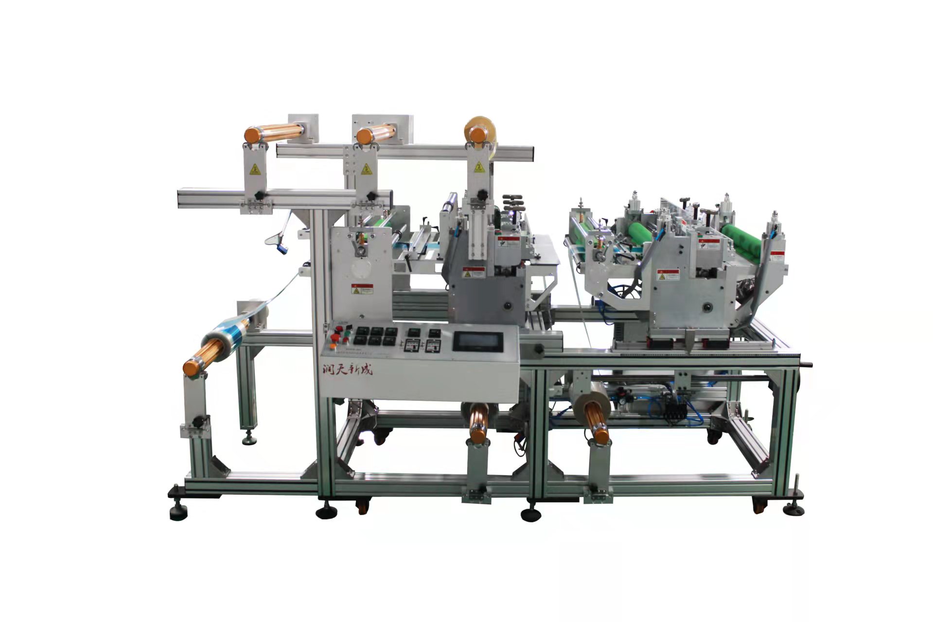 平壓平模切機 平刀模切機是通過上下沖壓的方式把提前根據產品圖紙開好的產品模型既刀模沖壓成某種形狀,整個模切機的操作流程是通過伺服電機拉料帶動自動送料機,穿過送料完成覆膜動作,再穿過模切機模座沖型,最后排掉邊框廢料,出來切成片完成全部過程。
